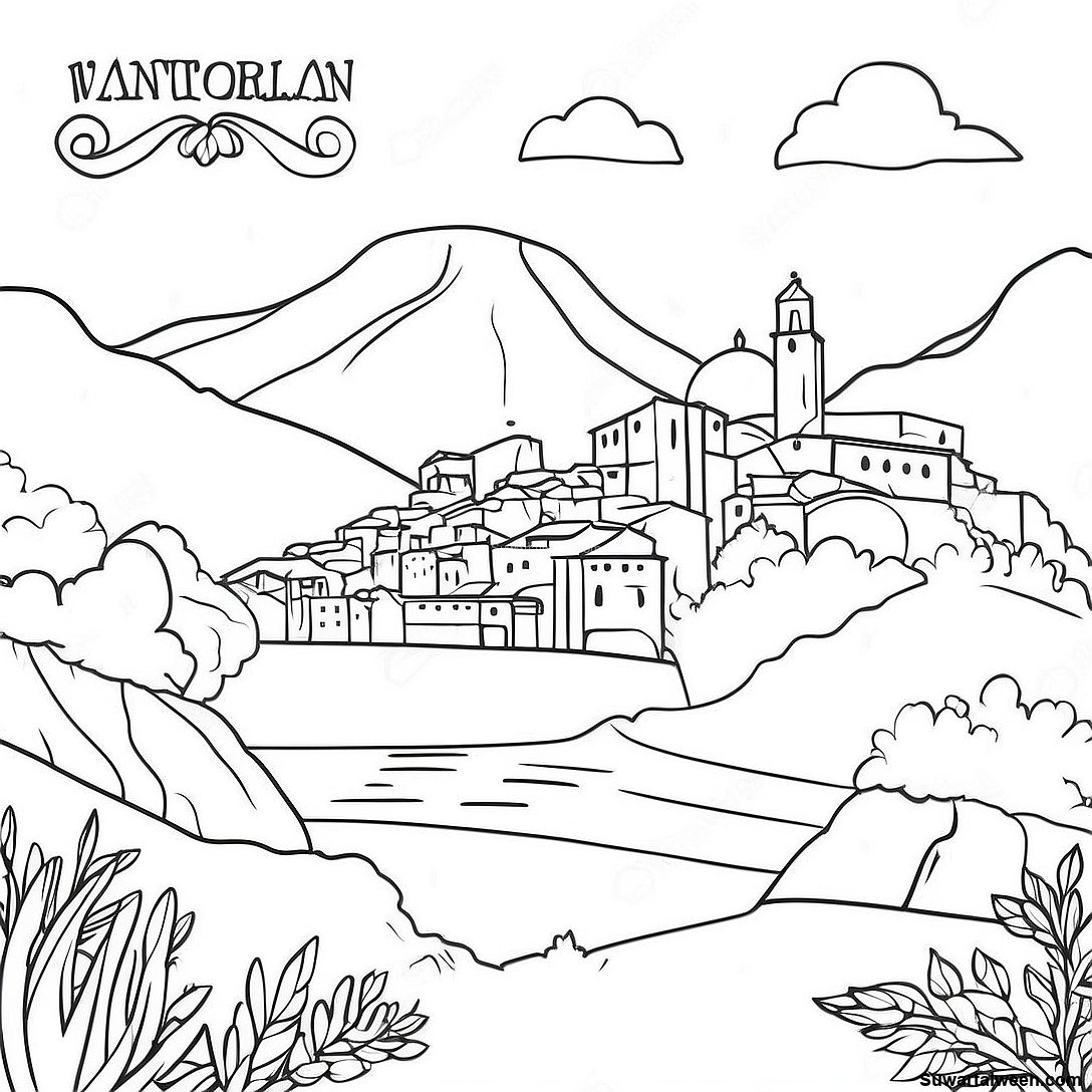قم بتنزيل PDF القابل للطباعة لـ صفحة تلوين منظر طبيعي إيطالي جميل