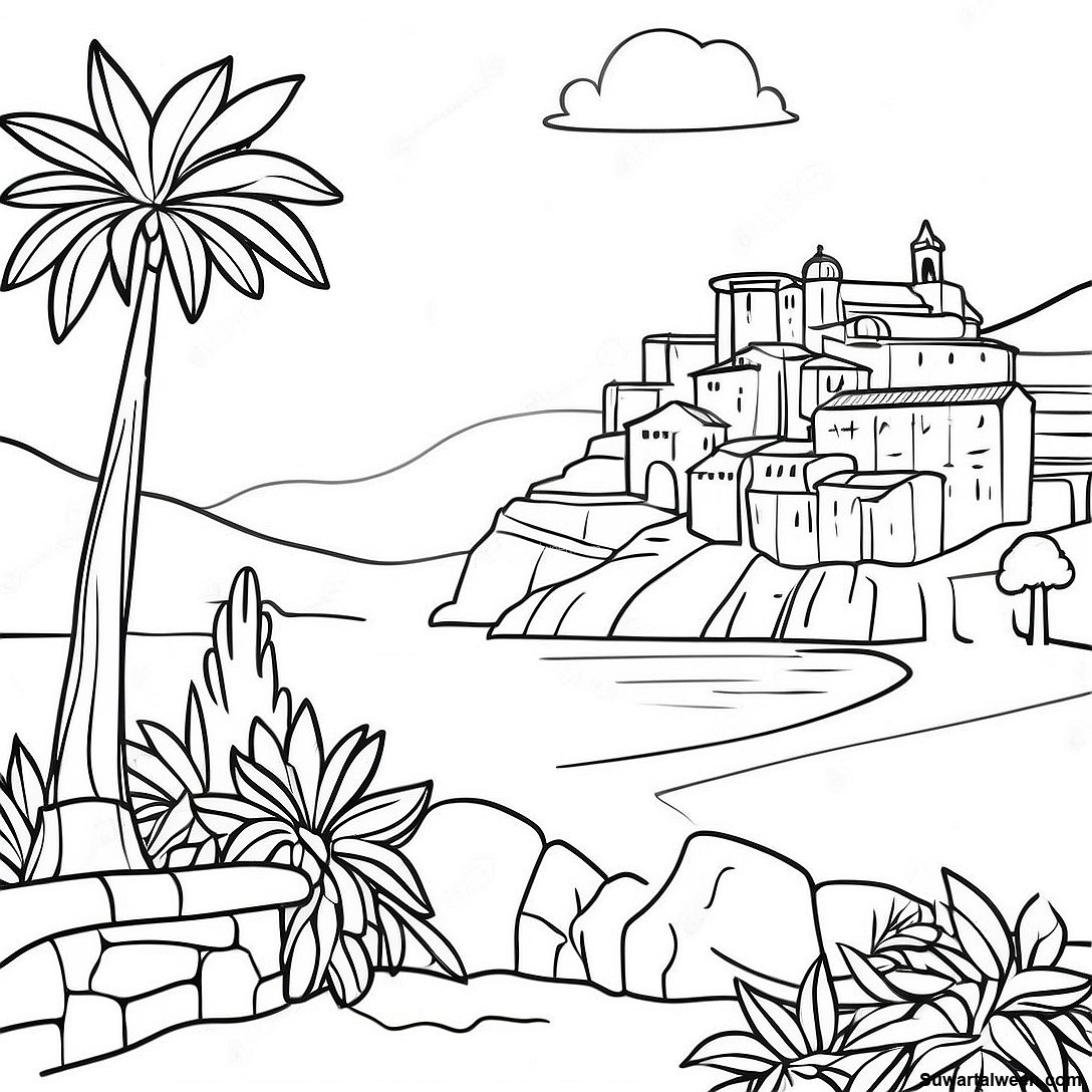 قم بتنزيل PDF القابل للطباعة لـ صفحة تلوين منظر طبيعي إيطالي جميل
