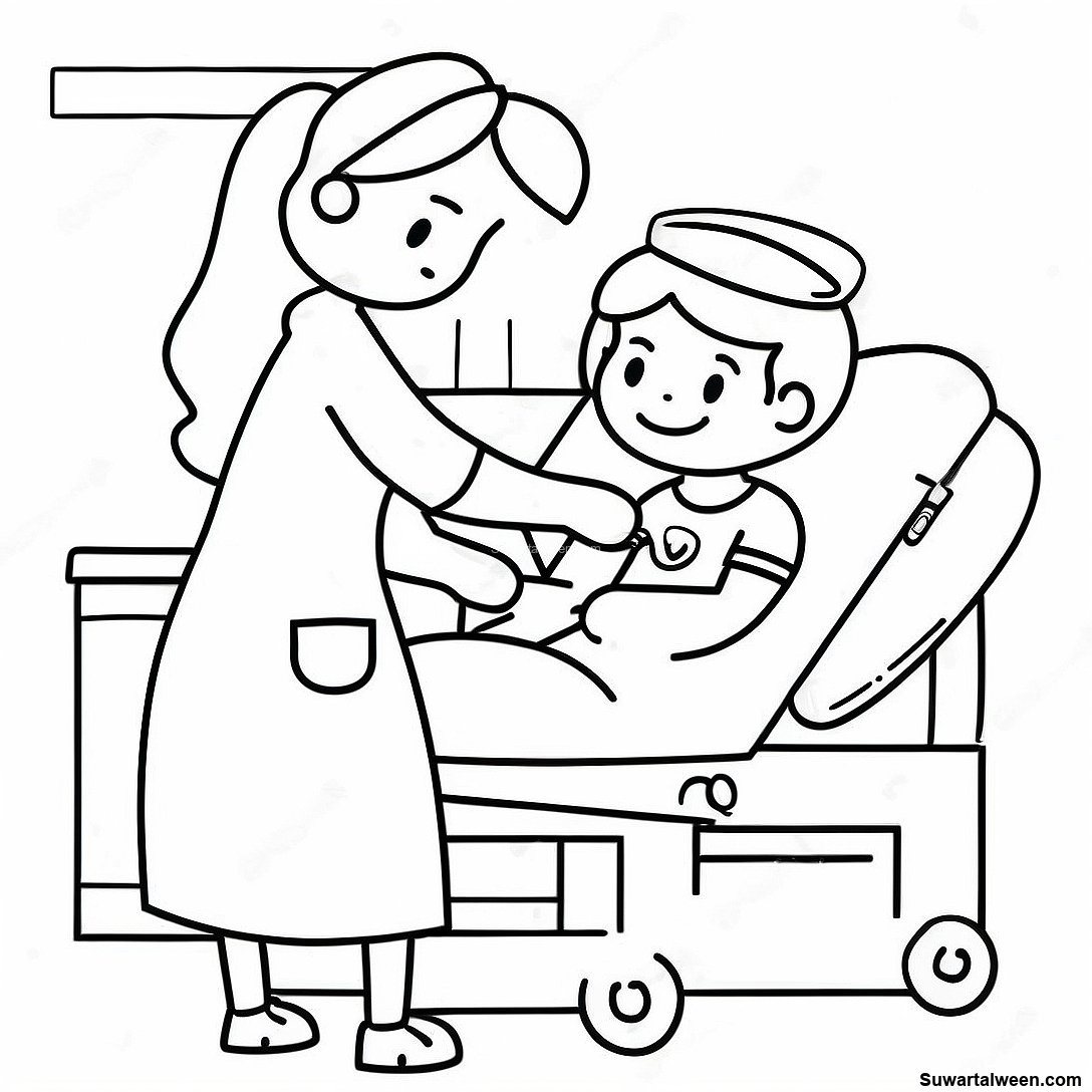 صفحة تلوين مربية لطيفة تساعد المريض