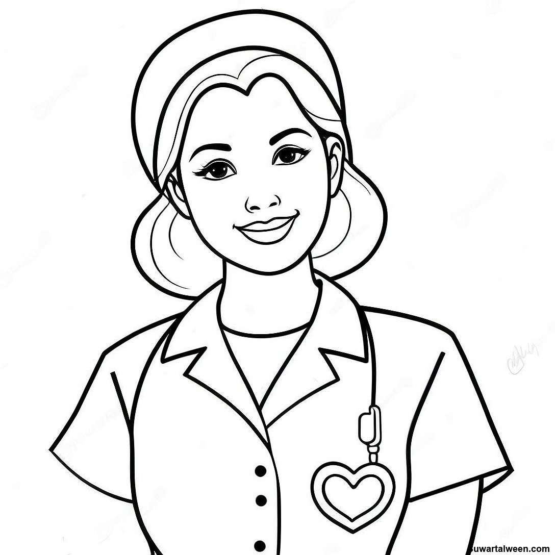 صفحة تلوين مربية ترتدي زي طبي مع قلب