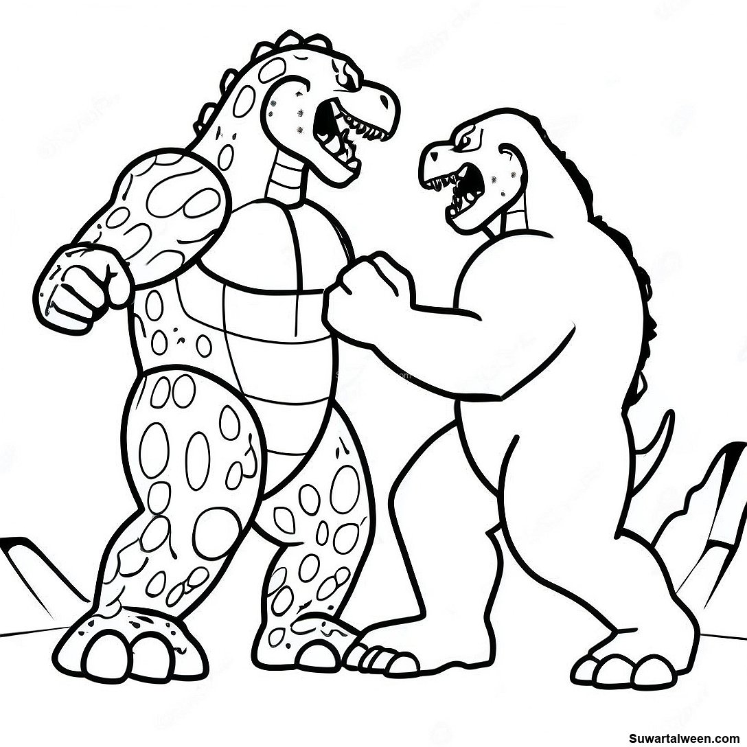 صفحة تلوين معركة ملحمية بين غودزيلا وكونغ