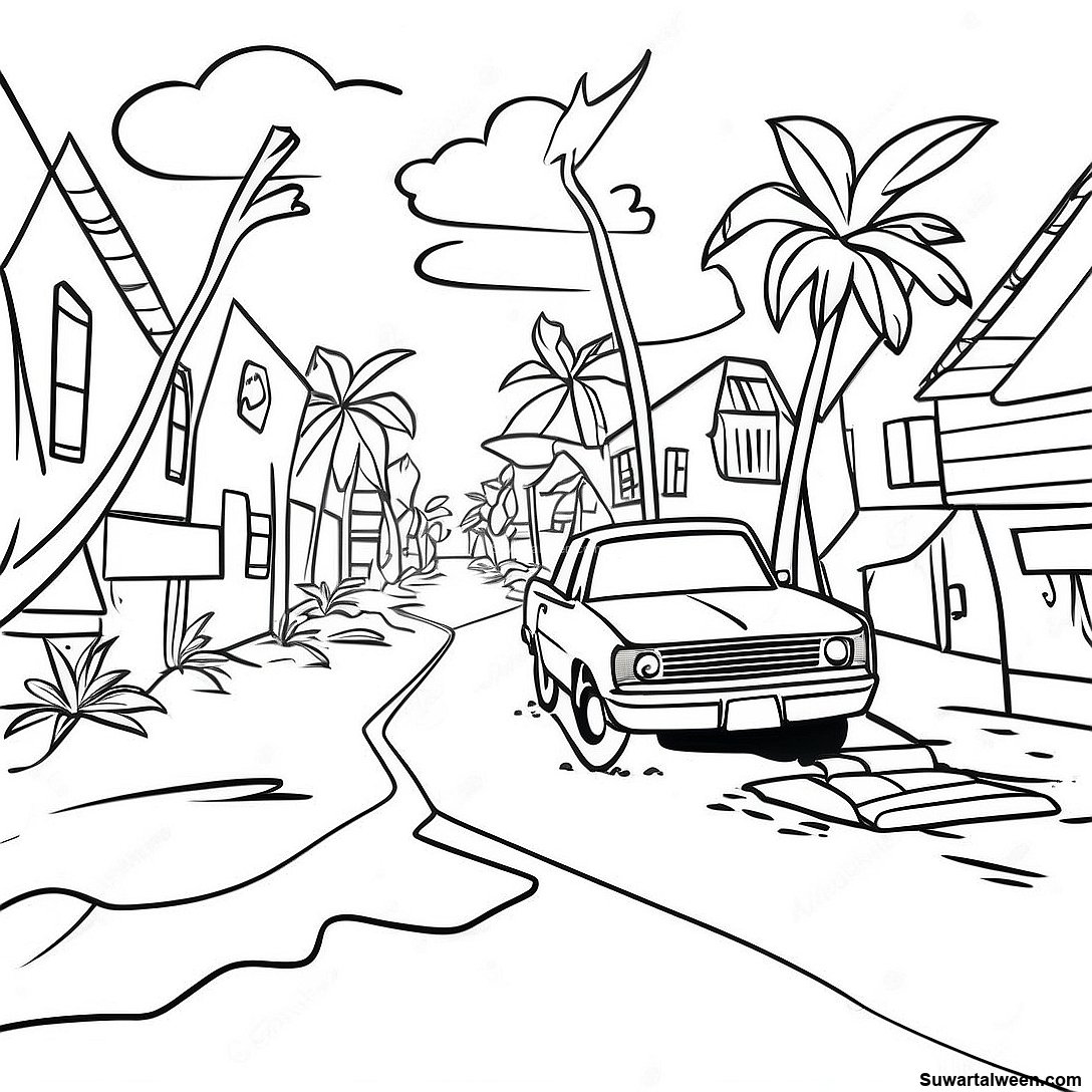 قم بتنزيل PDF القابل للطباعة لـ صفحة تلوين مشهد أضرار الإعصار