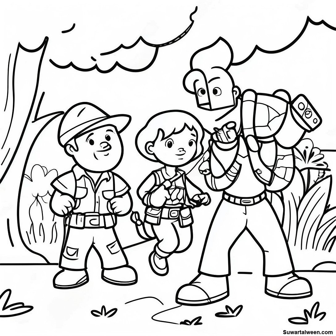 قم بتنزيل PDF القابل للطباعة لـ صفحة تلوين مشهد مغامرة جومانجي