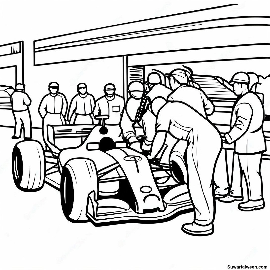 صفحة تلوين مشهد توقف سيارة الفورمولا 1