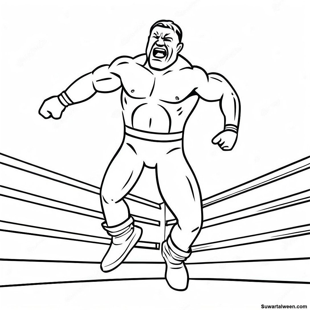 قم بتنزيل PDF القابل للطباعة لـ صفحة تلوين مصارع Wwe ثلاثي الأبعاد يقفز على الخصم