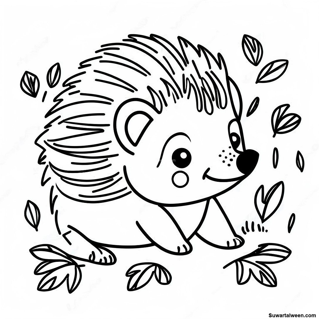 صفحة تلوين قنفذ رائع يتدحرج في الأوراق