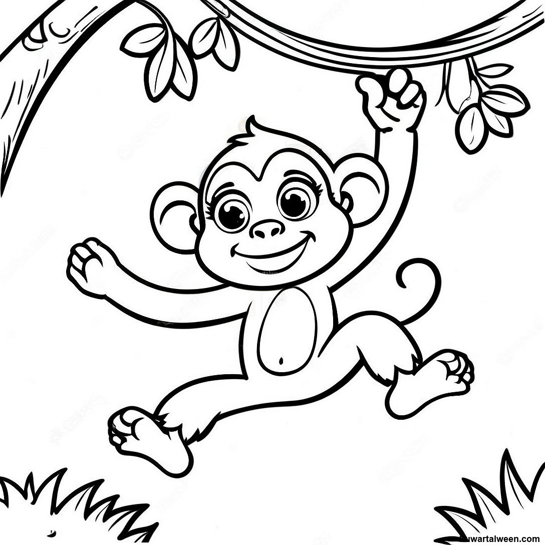 صفحة تلوين قرد مرح يتأرجح من الأشجار