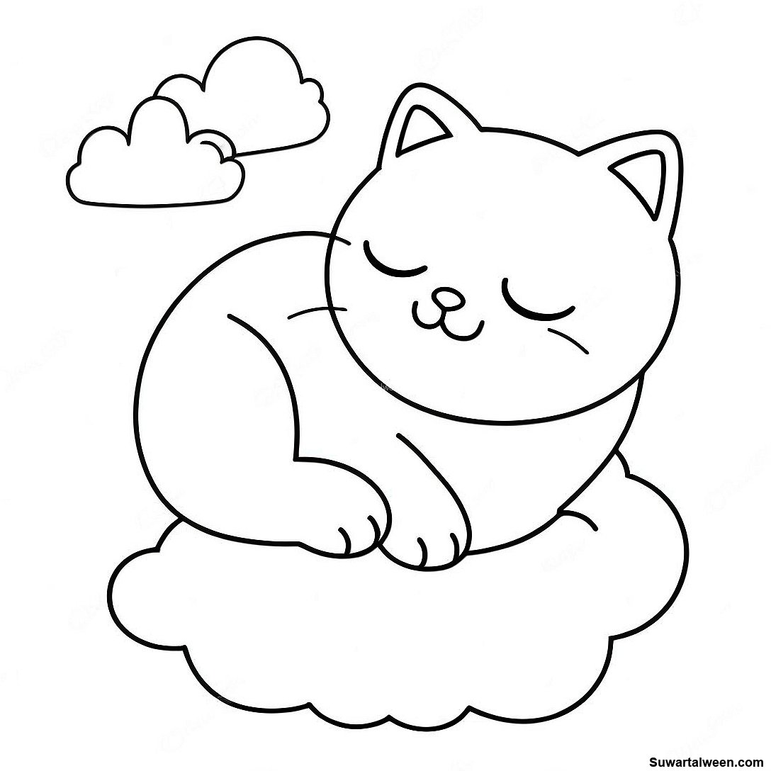 قم بتنزيل PDF القابل للطباعة لـ صفحة تلوين قطة أنمي نائمة على سحابة