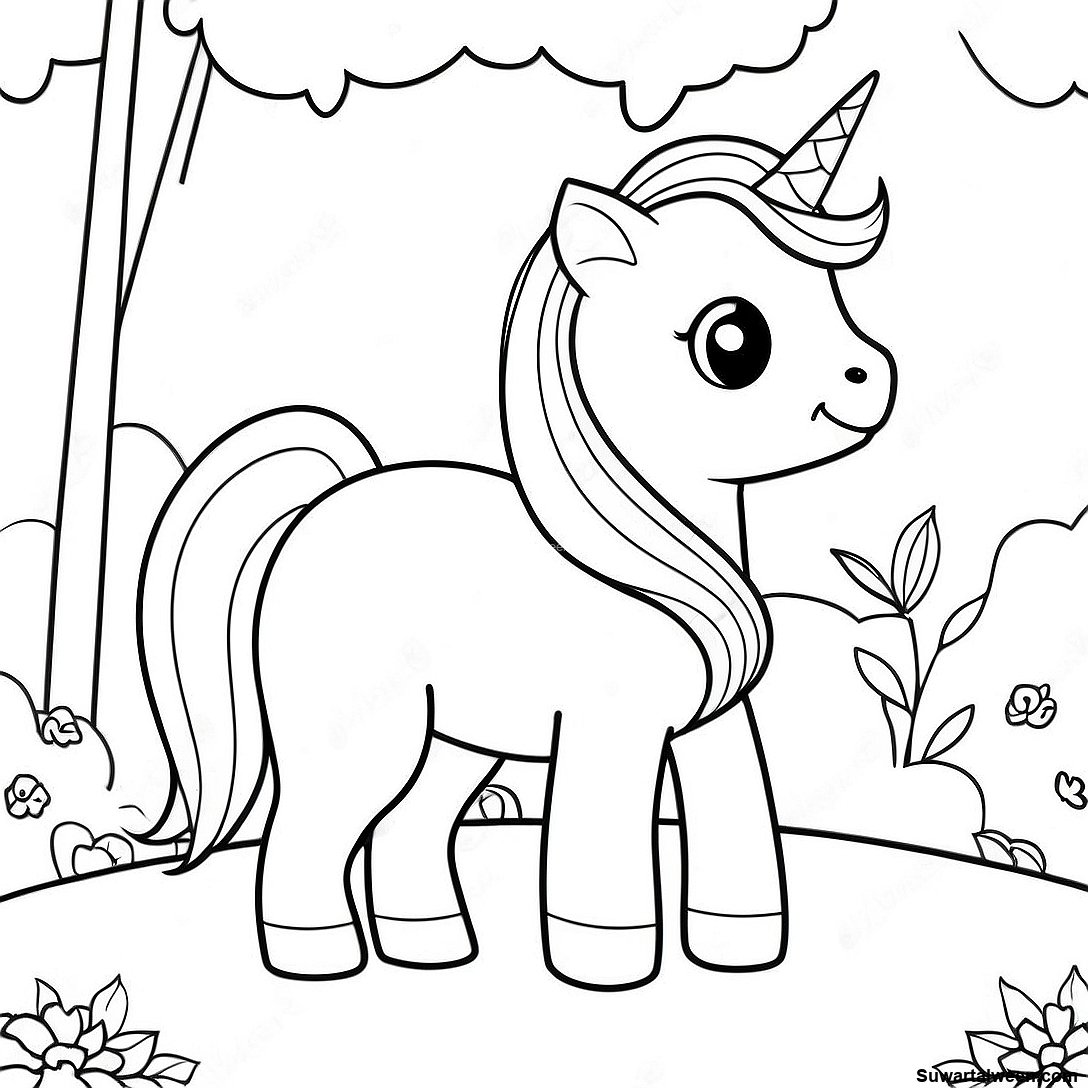 صفحة تلوين فتاة وحيدة القرن المغامرة في الغابة