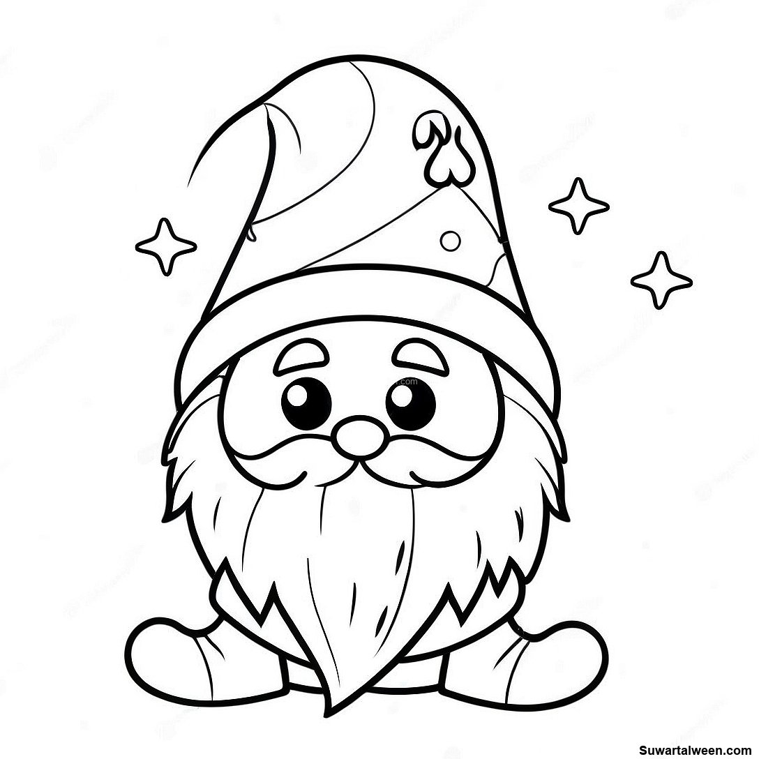 قم بتنزيل PDF القابل للطباعة لـ صفحة تلوين قزم عيد الميلاد الغريب مع القبعة