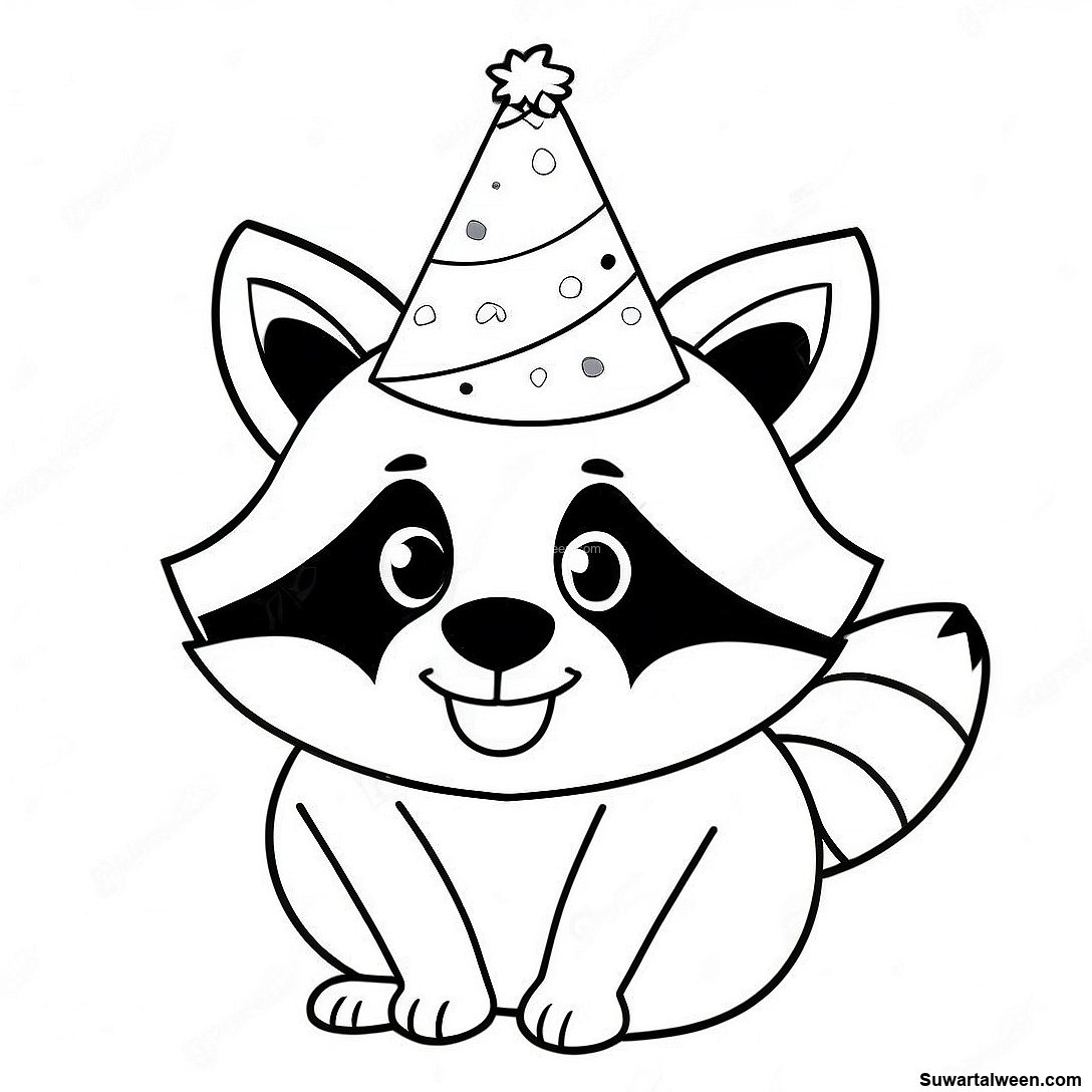 قم بتنزيل PDF القابل للطباعة لـ صفحة تلوين راكون يرتدي قبعة حفلة