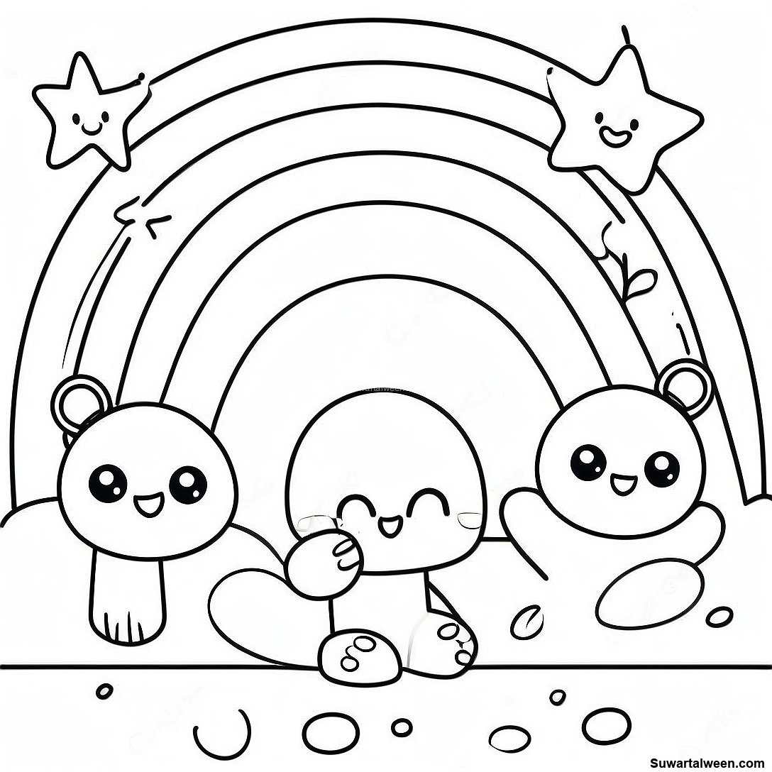قم بتنزيل PDF القابل للطباعة لـ صفحة تلوين أصدقاء قوس قزح الصفراء الجذابة