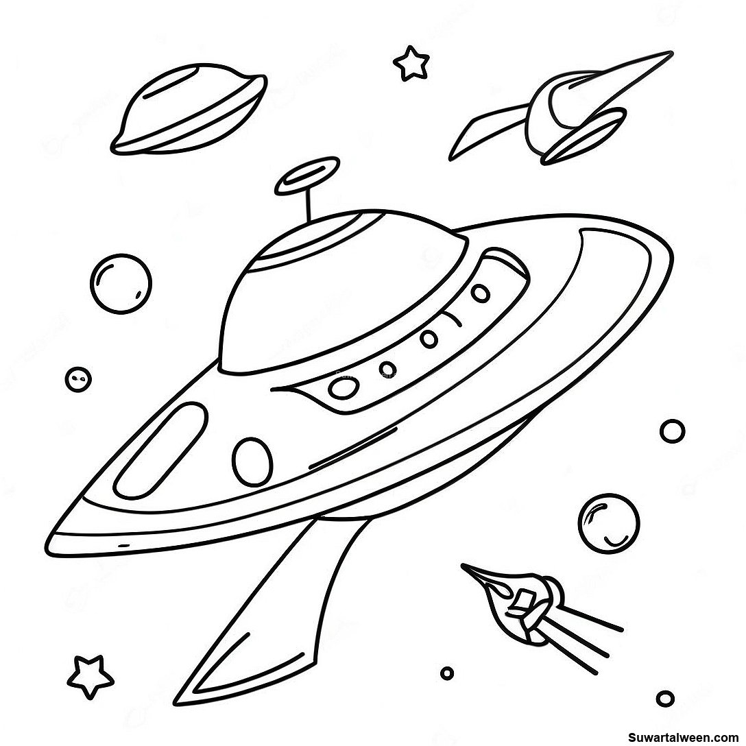قم بتنزيل PDF القابل للطباعة لـ صفحة تلوين سفن فضائية مجرية