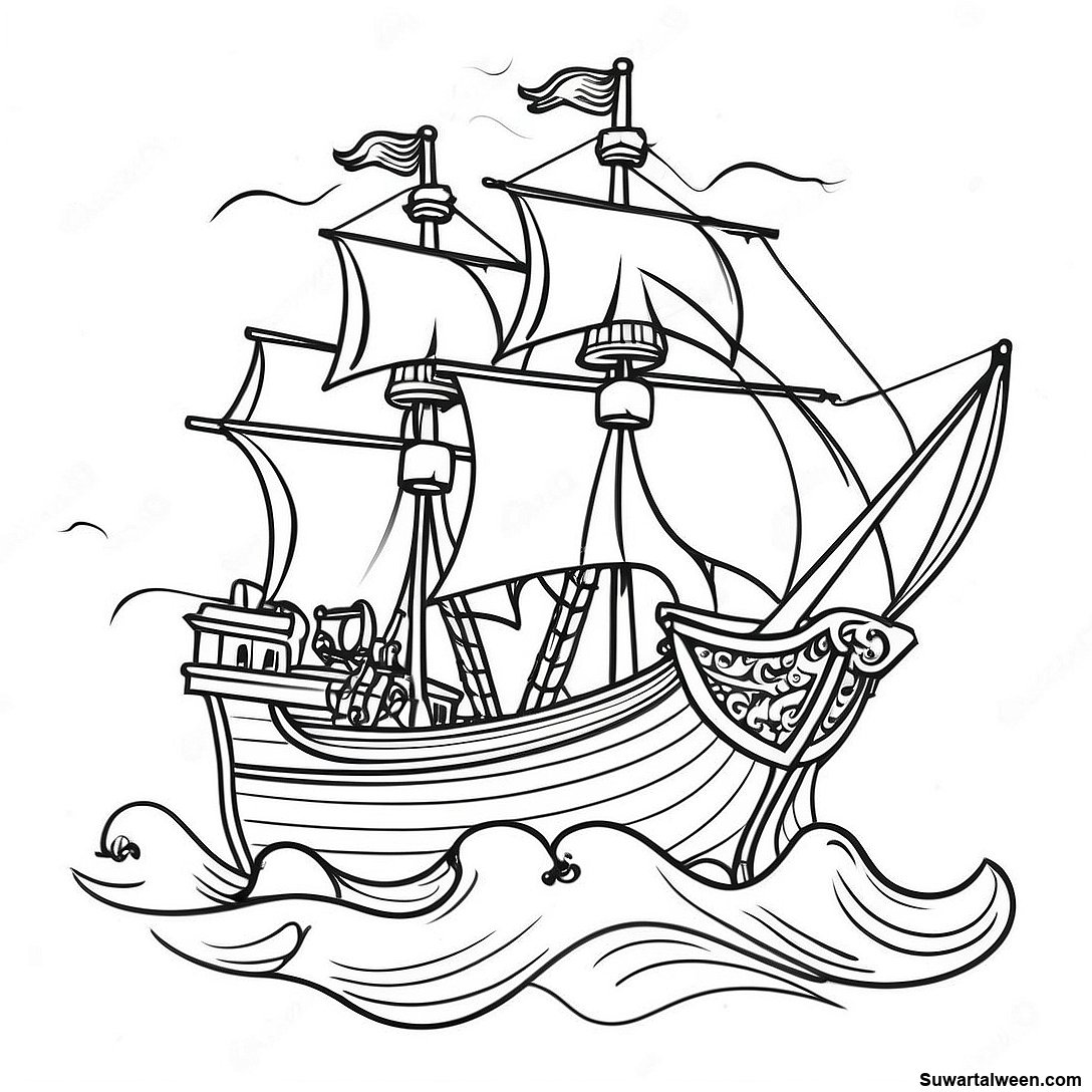صفحة تلوين سفينة قراصنة قديمة في بحار عاصفة