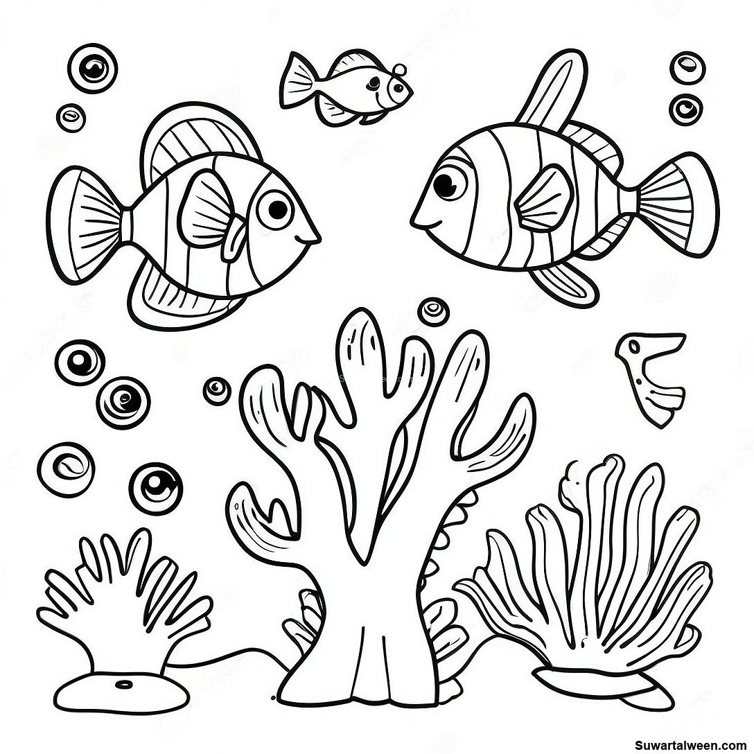 قم بتنزيل PDF القابل للطباعة لـ صفحة تلوين شعاب مرجانية ملونة