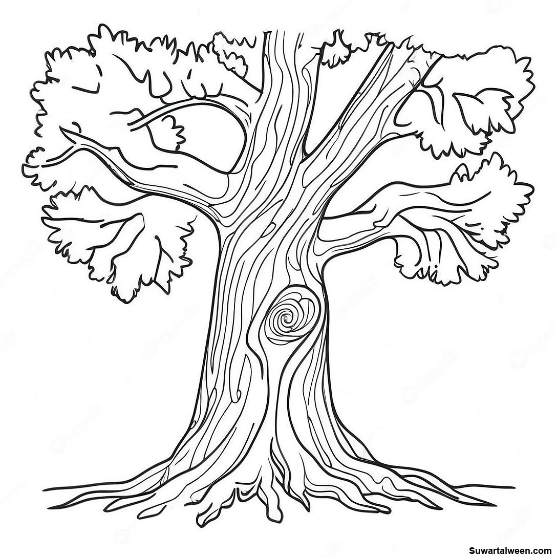 قم بتنزيل PDF القابل للطباعة لـ صفحة تلوين شجرة بلوط مهيبة