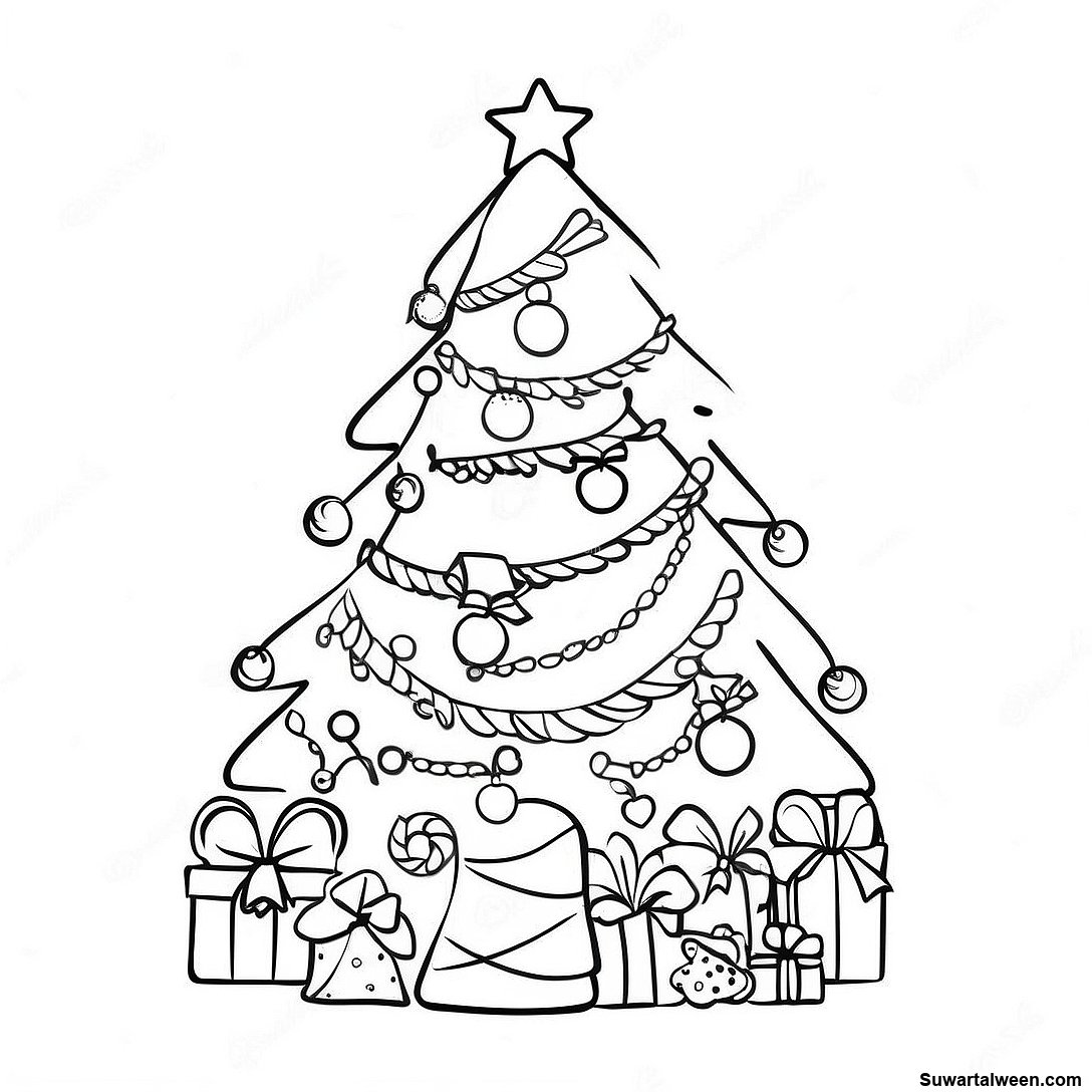 قم بتنزيل PDF القابل للطباعة لـ صفحة تلوين شجرة عيد الميلاد الغريبة