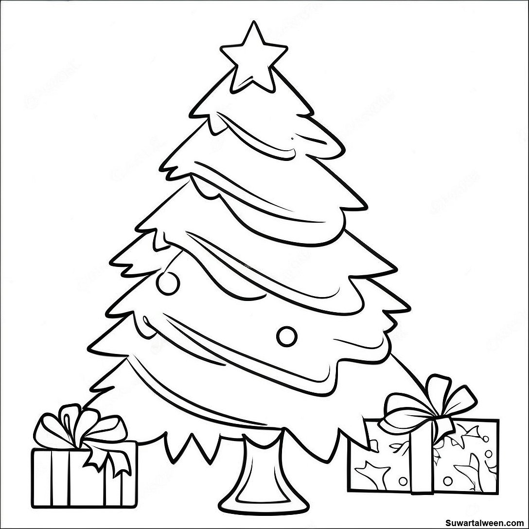 قم بتنزيل PDF القابل للطباعة لـ صفحة تلوين شجرة عيد الميلاد المتلألئة