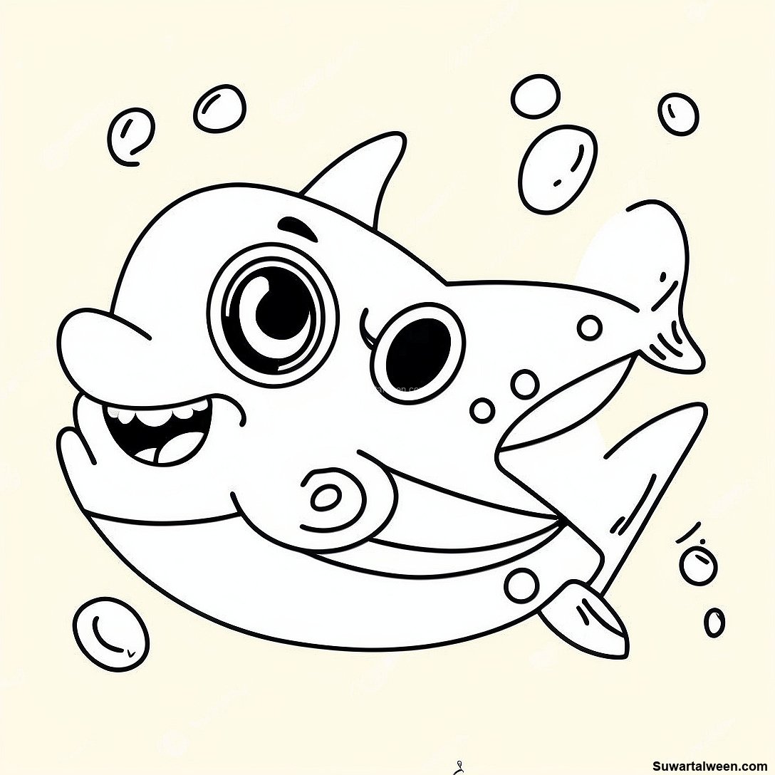 قم بتنزيل PDF القابل للطباعة لـ صفحة تلوين سمكة القرش الصغيرة الجذابة مع النظارات الشمسية