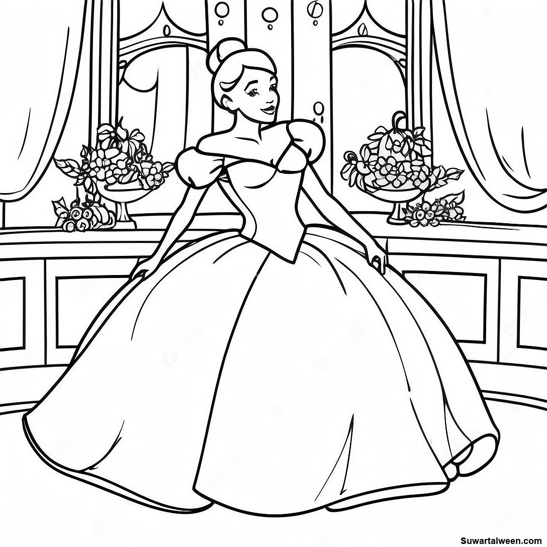 صفحة تلوين سندريلا في فستانها المتلألئ