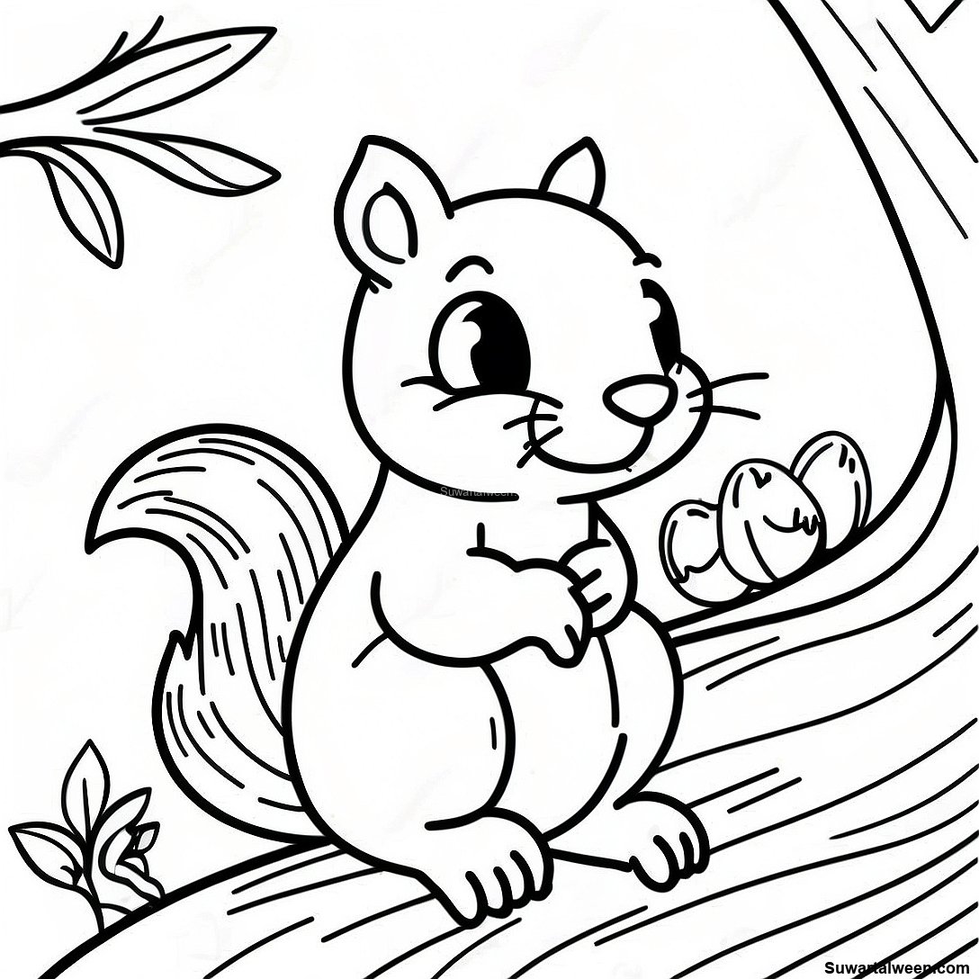 قم بتنزيل PDF القابل للطباعة لـ صفحة تلوين سنجاب لطيف يجلس على شجرة