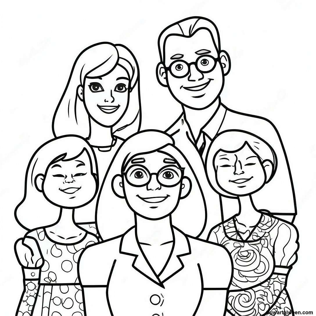 قم بتنزيل PDF القابل للطباعة لـ صفحة تلوين صورة عائلية للعائلة الفخورة