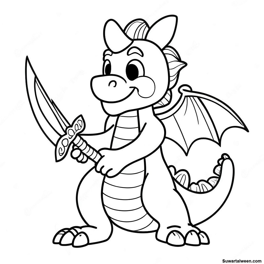 صفحة تلوين سيد التنين الشجاع مع السيف