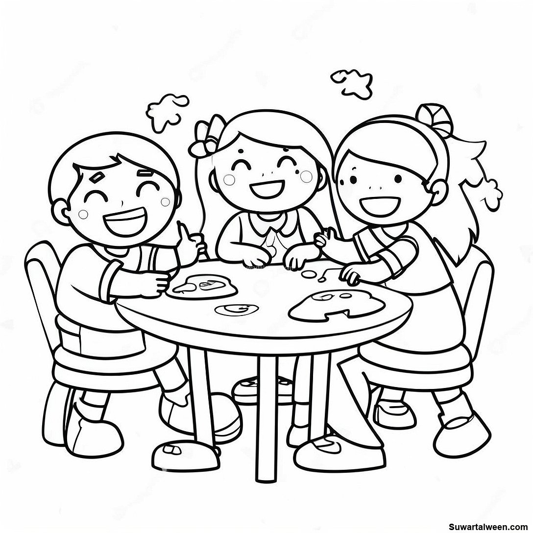صفحة تلوين وليمة عيد الشكر مع العائلة