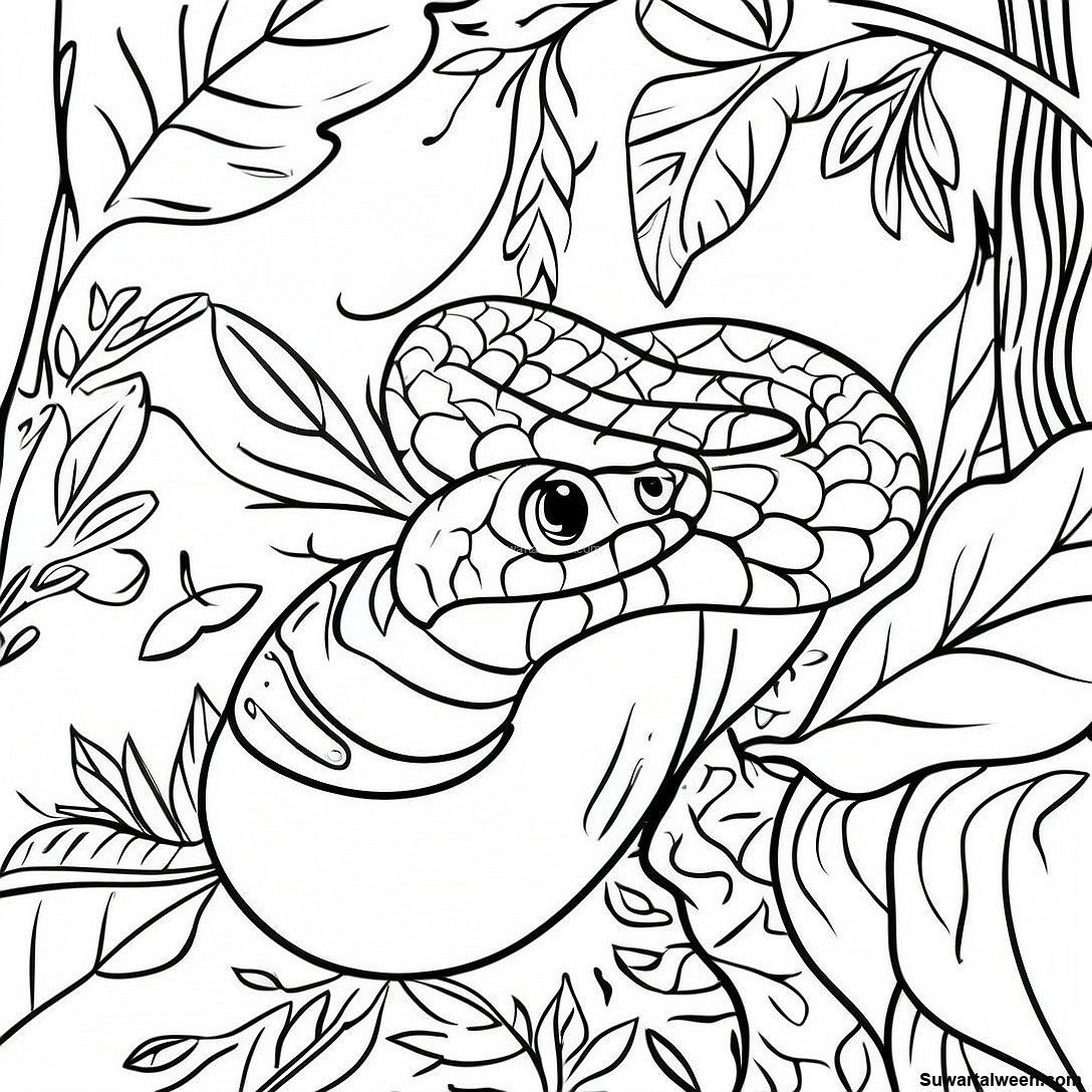قم بتنزيل PDF القابل للطباعة لـ صفحة تلوين ثعبان واقعي في الغابة متخفي بين الأوراق