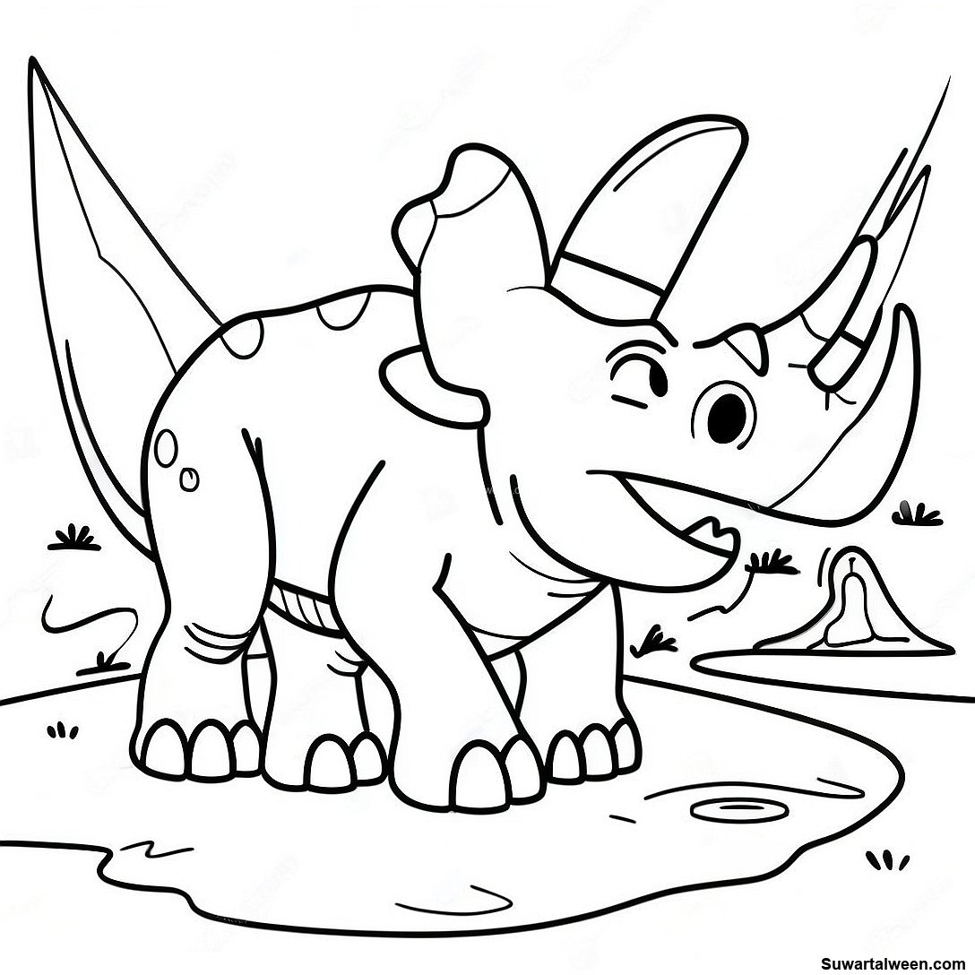 ترايسيراتوبس كرتوني يلعب صفحة تلوين