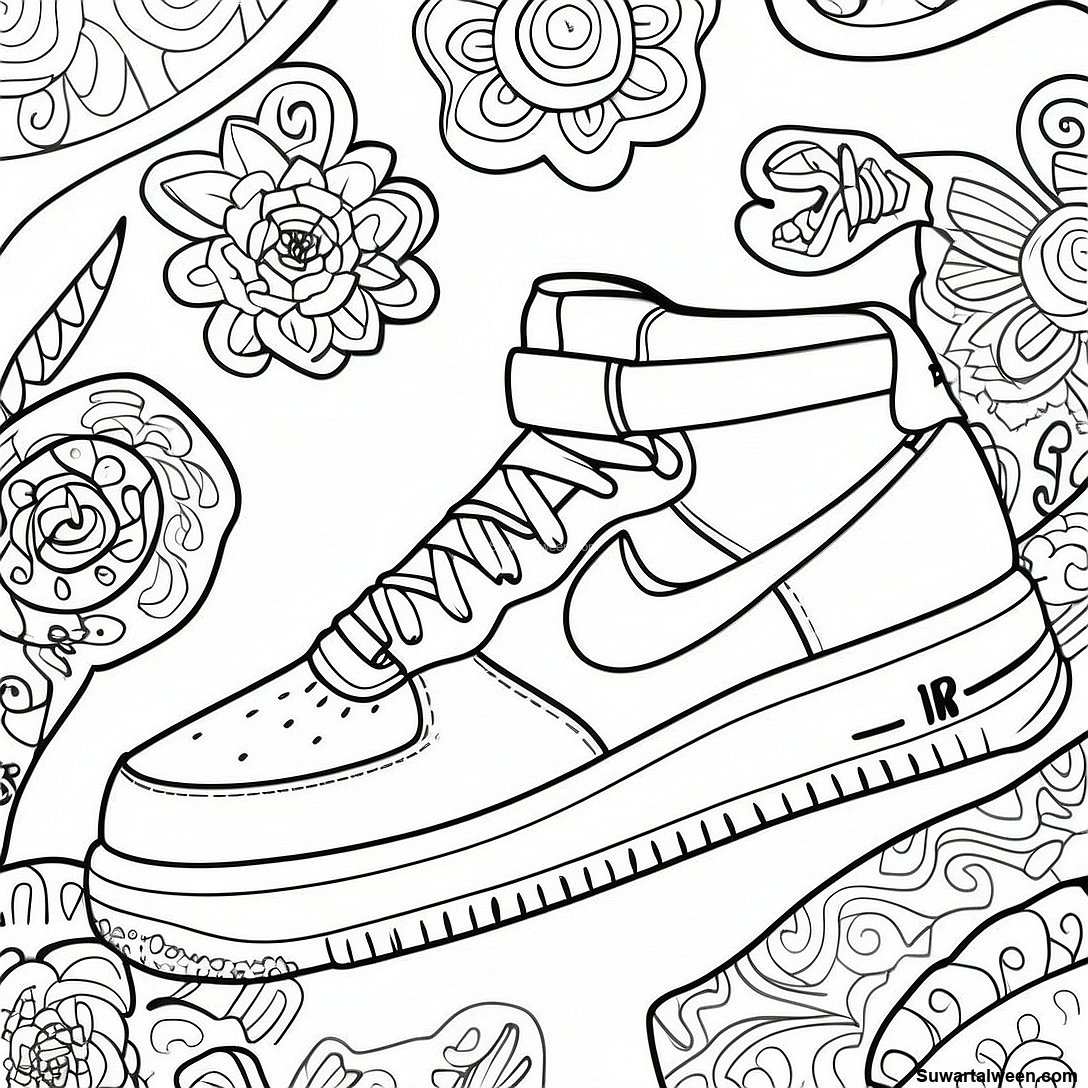 قم بتنزيل PDF القابل للطباعة لـ صفحة تلوين تصميم حذاء طائرة القوة الجوية 1