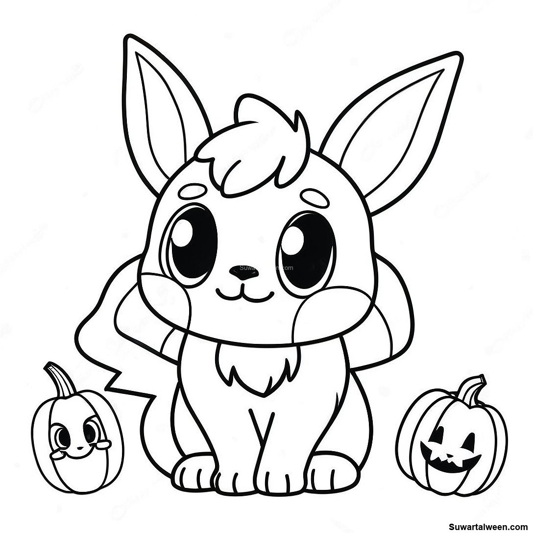 قم بتنزيل PDF القابل للطباعة لـ صفحة تلوين إيفي الساحر مع اليقطين