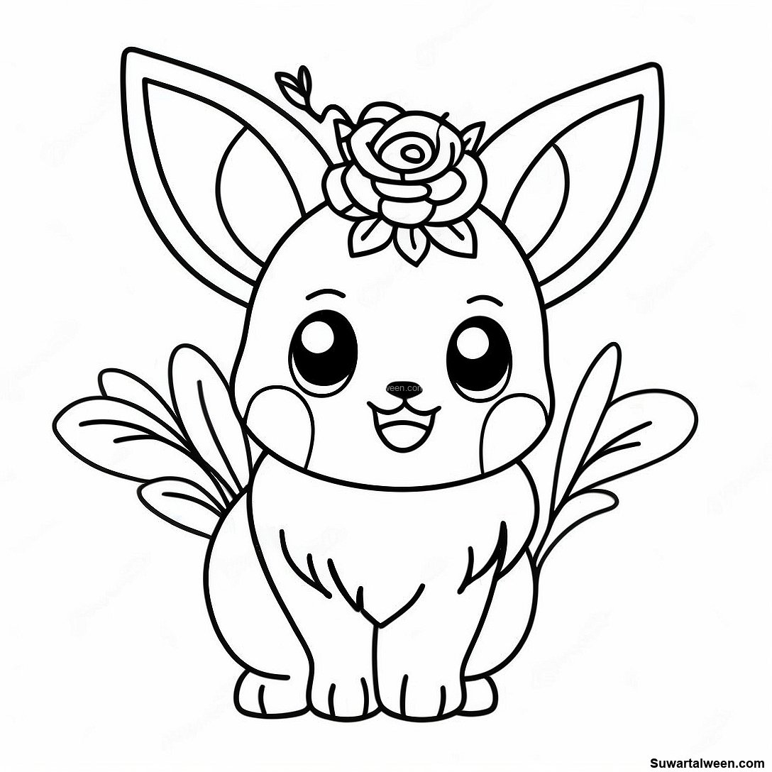 قم بتنزيل PDF القابل للطباعة لـ صفحة تلوين إيفي مع تاج من الزهور