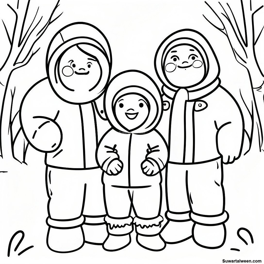 قم بتنزيل PDF القابل للطباعة لـ صفحة تلوين عائلة إسكيمو في ملابس شتوية