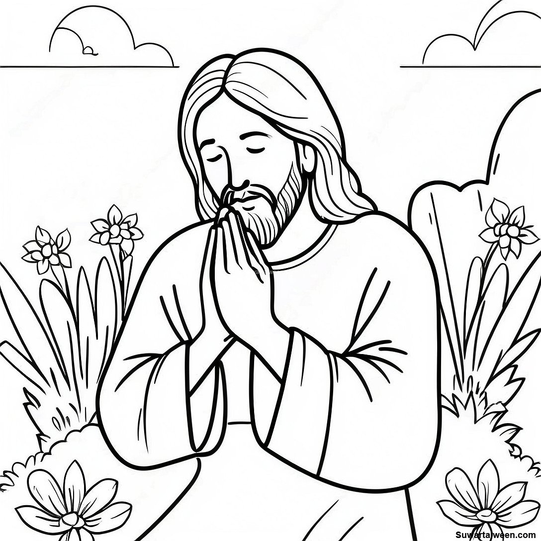 قم بتنزيل PDF القابل للطباعة لـ صفحة تلوين يسوع يصلي في الحديقة