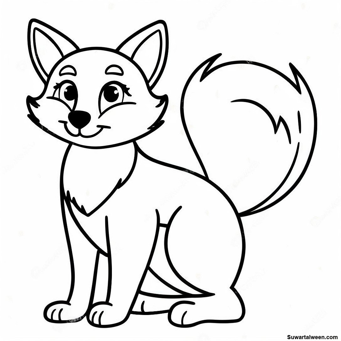 قم بتنزيل PDF القابل للطباعة لـ ثعلب ماكر ذو ذيل كثيف صفحة تلوين