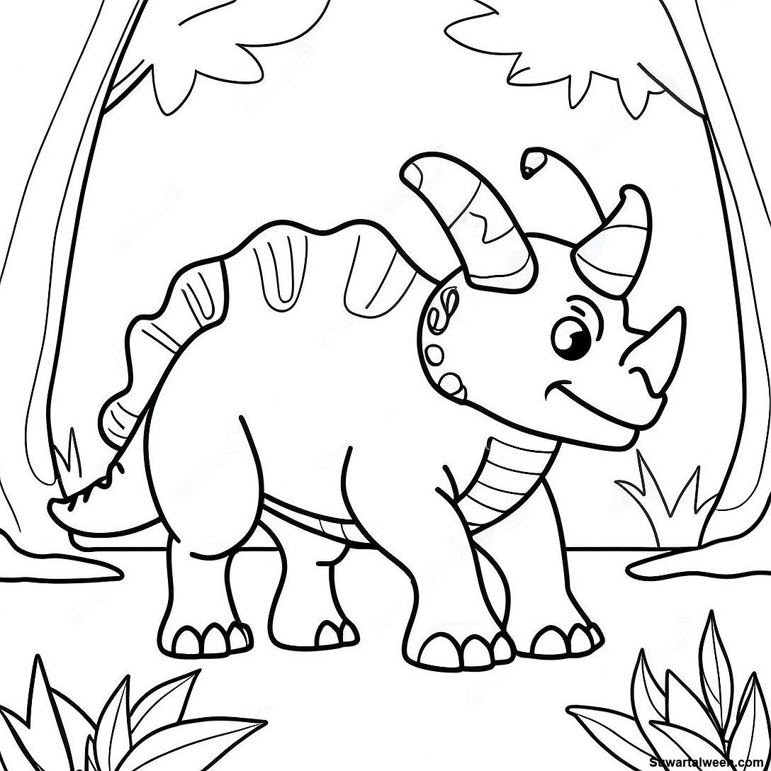 قم بتنزيل PDF القابل للطباعة لـ ترايسيراتوبس واقعي في الغابة صفحة تلوين