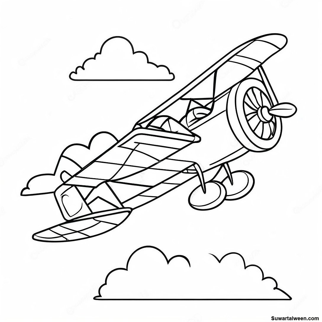 قم بتنزيل PDF القابل للطباعة لـ طائرة قديمة في السحب تلوين